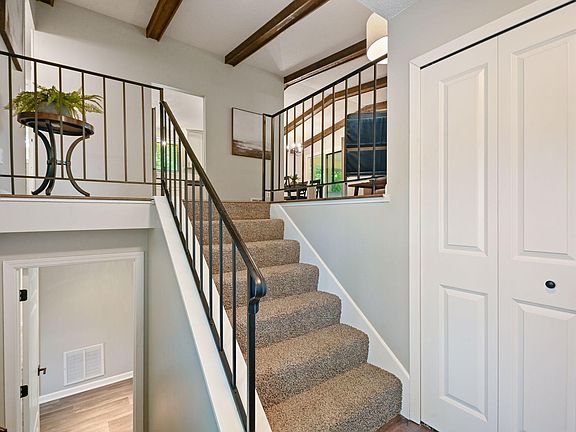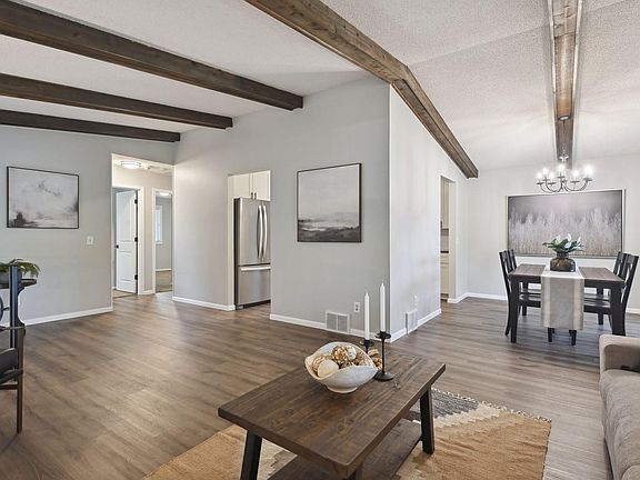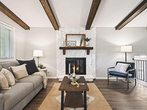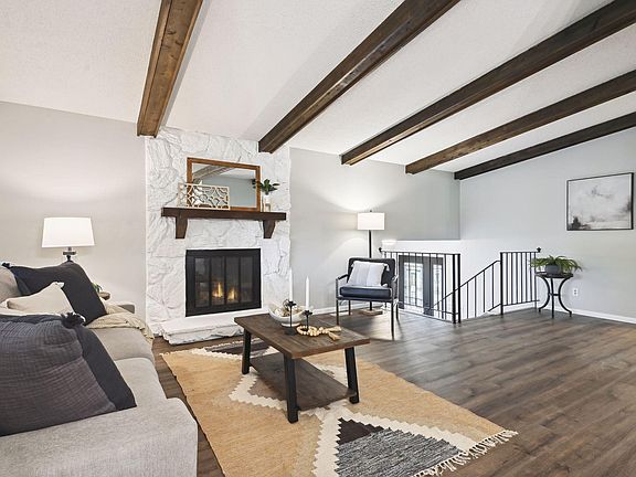 Step right in and it feels like home right away! This split level 3 bed 2 bath home will take your breath away. Updates throughout makes this home the perfect place to lay down your roots and move in without needed to do anything. The main level offers gorgeous LVP throughout, fresh paint and incredible wood beams accenting the vaulted ceilings. Floor to ceiling stone wood burning fireplace is the perfect accent to the living room. Kitchen has white shaker cabinets, quartz countertops, stainless steel appliances and a perfect kitchen sink window! Off the dining room is a massive 3 season porch perfect for extra entertaining space. Bedrooms are spacious and offer ample storage/closet space. Lower level is large and has a great gas burning fireplace perfect curling up to on cold nights. The backyard is a perfect spot for future MN summer BBQ's. All new windows and siding in 2021!! Don't wait on this one! So much to offer on this one.