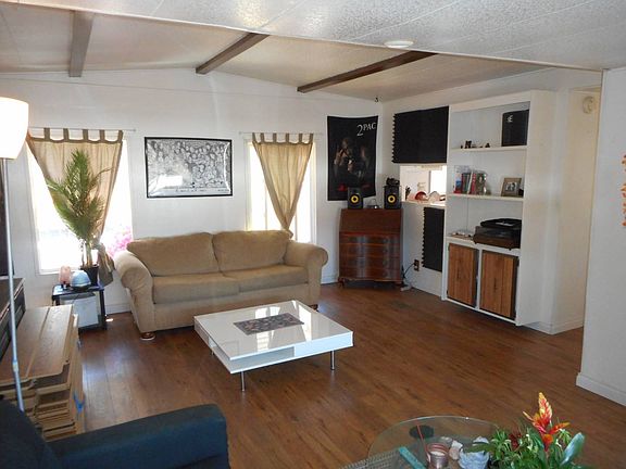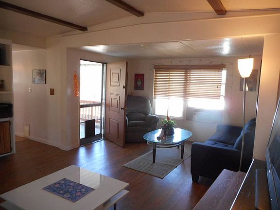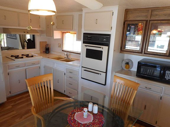 This Adorable 1971 Fleetwood is located in an all age community, Perfect for a small family just starting out! Backed up to open hills with a good size yard for children and pets. With the factory pop out the home feels open and spacious. The eat-in Kitchen is bright with plenty of storage and views out to the hills. The roomy Living room leads out to a back deck and yard. Both bedrooms have factory built-ins for extra storage. Washer and Dryer located in the hall will stay with home. Freshly painted, Newer laminate throughout, newer central air conditioner and a few updated dual pane windows. Great home and so Affordable, Don't wait, Call Today! (AAS6281)