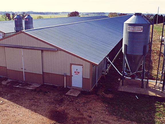 5 broiler houses sitting on 23.8 +/- acres. 3 barns 40x400, 2 barns 43x500, one compost shed (21x58), workshop with electric (25x40). Total of 3 wells, 1 125KW propane generator. Just too much to mention! Please see attached document for more information.