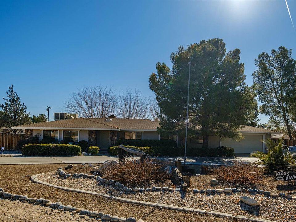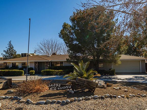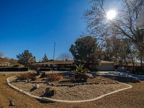 Gorgeous home in a VERY highly desirable area of Apple Valley! Lovely curb appeal as this home is located on a corner lot with a circular drive and lots of mature landscaping! Upon entry you are greeted with an open, bright foyer that leads to a stepdown living room with a big picture window. Elegant formal dining room w/ custom ceiling design. Cozy den with a wood burning stove! The updated kitchen features newer appliances, beautiful granite counter tops, walk in pantry and tons of cupboards. Well appointed master suite w/ walk in closet and spacious private bath! Two nice sized guest bedrooms w/ big windows and large closets. Super unique bonus/laundry room with it's own 1/2 bath - perfect for an office, craft room etc...Between the FULLY PAID SOLAR, fireplace w/ heat-o-later and the evap cooler, this home is very energy efficient. Newer tile flooring thru out, enclosed patio, gorgeous front landscaping, RV hook ups on almost a full acre!! Take a look today.
