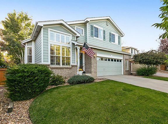 Broadlands beauty! Desirable Broomfield location in this beautiful golf course community. Stunning kitchen remodel with quartz countertops, subway tile, white cabinets, and a gorgeous kitchen island with butcher block countertop. Soaring vaulted ceilings, wonderful entertaining space, and a backyard you only dream about. Vaulted ceilings, double walk-in closets in master. Finished basement with bedroom, bath and large flex space. 2.5 car oversized garage with plenty of storage. Easy access to all the neighborhood amenities makes this home a true must-see. Sophisticated in style + comfy in feel. Classically styled + modern in upgrades. Truly a beautiful home!