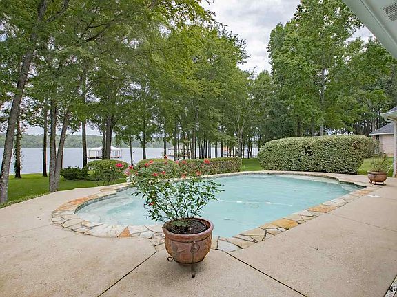 Custom built waterfront home in East Lake Woods, a gated community only minutes from Loop 323! This 3 bedroom, 2 bath home is situated on a beautiful 1.003 acre waterfront lot. The split bedroom floor plan features a large living area with wood burning fireplace and custom trim work. The kitchen features granite counter tops, custom cabinets, island, double ovens, and pantry. The large master bedroom has a great view of the lake plus bath with separate walk-in shower, jet tub, and walk-in closet. The home was designed to take in the best views possible of Lake Tyler East. Additionally, this home features a study or office area, formal dining room with built-in hutch, and a lovely custom pool overlooking the lake and boathouse. The boathouse features two boat stalls with slings, and a jet ski platform for those awesome lake toys!