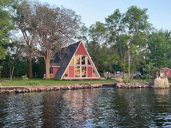 Welcome home to your own .9 acre piece of paradise surrounded by nature and water. You will NOT find a more picturesque slice of Heaven! Sunset lake view through the floor to ceiling A-frame windows or sit up on the sweetheart deck overlooking your own walleye spawning creek with a bridge leading you to the guest house. Sit out in the back for a totally private wooded view by the bonofire. Your friends & family will love the loft and guest house! Guest house is fully insulated. it has newer roof & siding! Has NEW wiring, lighting, front window, door, roof peak and entry. Awesome 8X12 shed for all your lawn & water toys. A-frame has Newer carpet and flooring on main level. Newer shower & toilet. NEW kitchen counters. The pics are beautiful but they don't even come close to portraying how unique this property is with a different beautiful view from every side. MUST come see for yourself...you will LOVE it! On Culdesac! Most furniture included! (Request List) Dock for sale separately.