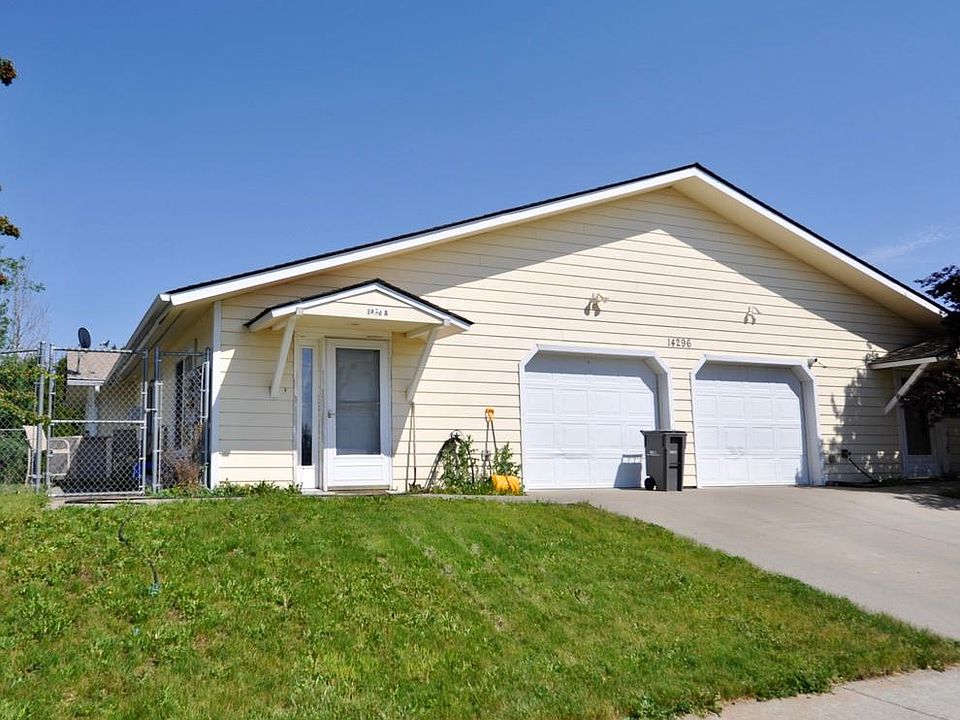 This spacious duplex has 1,154 square feet of living space with an open concept living and dining area. 2 bedrooms and 1 large bathroom with tons of storage space. Laundry room with electric dryer and washer hook-ups. 1 car garage and a fully fenced back yard. Kitchen has a refrigerator, dishwasher, and electric range. Rent is $1,325.00/month. Tenant pays all utilities separately. (1) dog might be ok with owner approval. Age and Breed restrictions apply. $50.00 monthly pet fee and refundable pet deposit required. There is (1) wall AC unit installed in living room. NO sprinkler system. Tenant is responsible to manually water the lawn and keep it weed free. Unit is available on September 1, 2022. Terms and Conditions may vary for roommates $40.00 application fee per adult security deposit is 1.5 x the rent (terms and conditions may vary for roommates) No Smoking No Sprinkler system last months rent is NOT required at move in to be held in escrow (1) dog might be ok with owner approval (age, breed and size restrictions apply) $50.00 monthly pet fee and $500.00 refundable pet deposit required Tenant responsible to manually water the yard and keep it green and weed free 1 year lease required Tenant pays all utilities separately (City of Rathdrum, Avista/Kootenai, CDA Garbage)