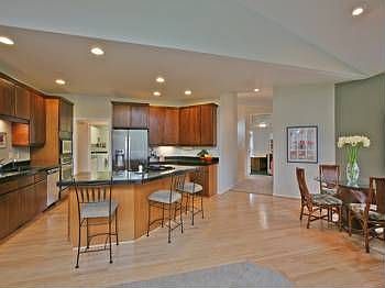 OPEN SUN, 12.11 1-4pm ~ This remodeled one level home in the gated, 55+ community of Hartung Villas, has vaulted ceilings thruout. Open, airy & surrounded by walls of windows this lovely home looks out onto a level, fenced backyard. Lots of room in this 2300sf home w/ a large mstr suite, an office & guest suite. Oversize garage. Perfect downsizer or Portland pied a tier.