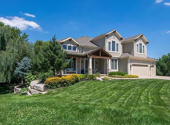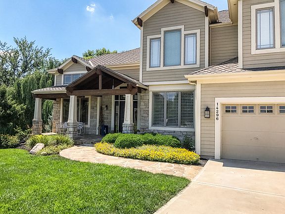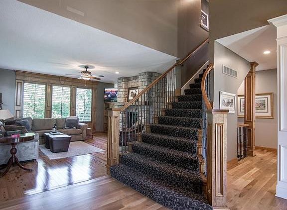 Nestled deep in a cul-de-sac, in the heart of Blue Valley, .5+ acre yard sides walking trail, green space and backs mature tree line & estate homes*Flagstone front porch & rear patio*Built in firepit, hot tub and sledding hill ready for outdoor fun*Gorgeous screened porch*Fresh interio paint*Beautiful oak and acacia wood floors on main*new carpet upstairs*granite kitchen w/island, hearth & walkin pantry*Spacious owner's suite w/sitting rm*Walkout LL w/ bar, stone FP, guest rm & bath*Enclosed underseck deck storage*