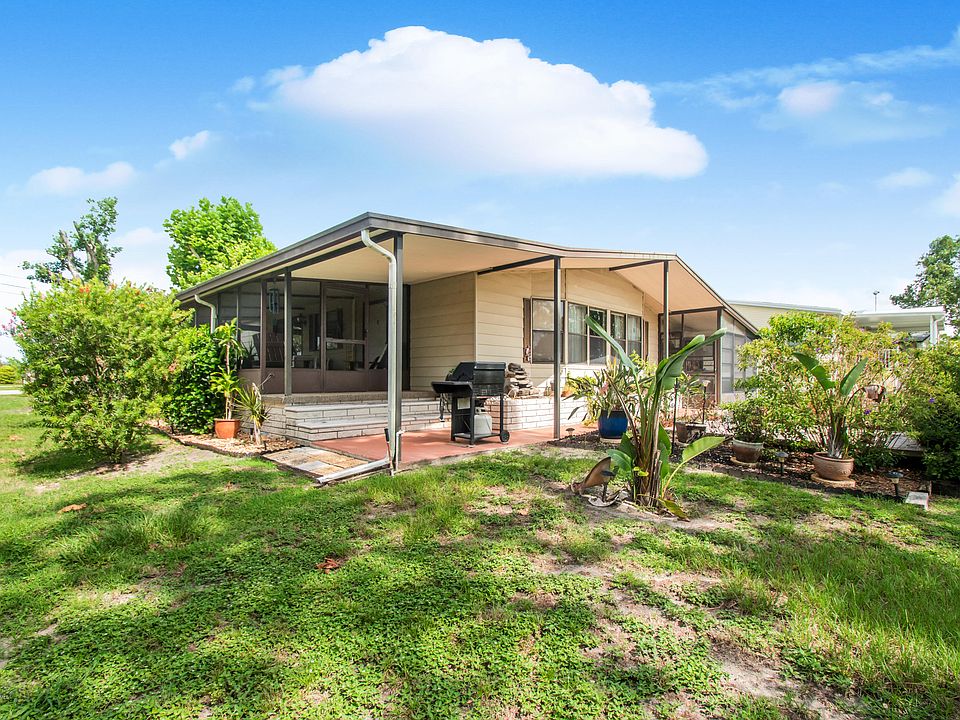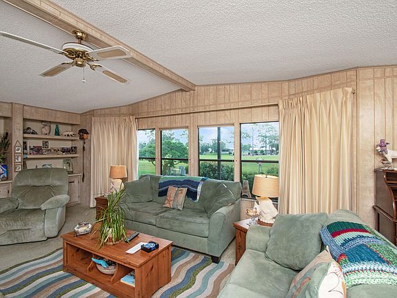Location, location, location! Spacious 2/2 golf course home with AMAZING PANORAMIC VIEW of the 16th TEE! Spacious island kitchen with pantry, cathedral ceilings, enclosed porch, screen porch, utility room, PAVERED PATIO in LANDSCAPED BACKYARD. Amenities include heated swimming pool, clubhouse, tennis, fitness room, library, and much more. OWN YOUR OWN LAND IN THIS POPULAR 55+ GOLF COMMUNITY!!!