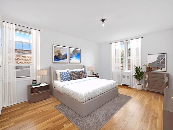 This quiet and peaceful 6th floor, corner apt boasts a large (approximately 770 sf), wonderful layout and spacious rooms that flow nicely through sun-bathed space. With windows in every room (8 total windows), the cross ventilation and airflow are truly remarkable. The apt also has the bonus of a dedicated dining or home office area off the living room that is creates in its own private space. Freshly painted throughout, this bright apt dazzles in its uniqueness. The windowed, galley kitchen has significant cabinetry storage and counter space for even the most dedicated cook, while also offering ample room for a kitchen table or large banquette. The kitchen also features a dishwasher, gas range/oven, and microwave. A bedroom window AC unit is installed and also included. The building is well maintained, has a live-in Super, a Gym (additional fee), storage (additional fee), a sun-filled garden, modern laundry room, bike room, and a convenient clothing recycling collection bin. Located in wooded Hudson Heights, nestled within some of Upper Manhattan's finest Art Deco adorned neighborhoods, this apt is only a few blocks from the A Subway at 181st Street and also close to the 1 train. Enjoy Ft Tryon Park and numerous other green nature habitats and water spaces close by. Great restaurants and shopping are nearby as well. If a quiet, green respite from the city is what you're looking for, you're assured to find it in Upper Manhattan. This unique apt will not disappoint. Please note that some photos have been virtually staged. There is currently a firm NO-PETS policy in place.