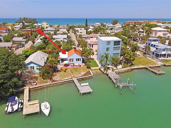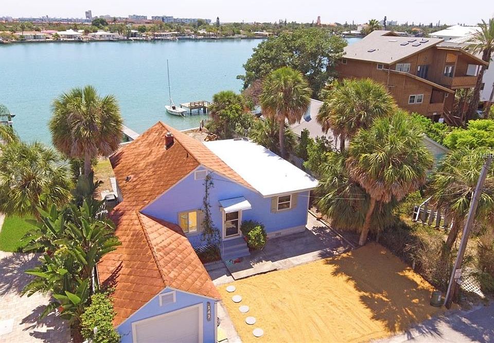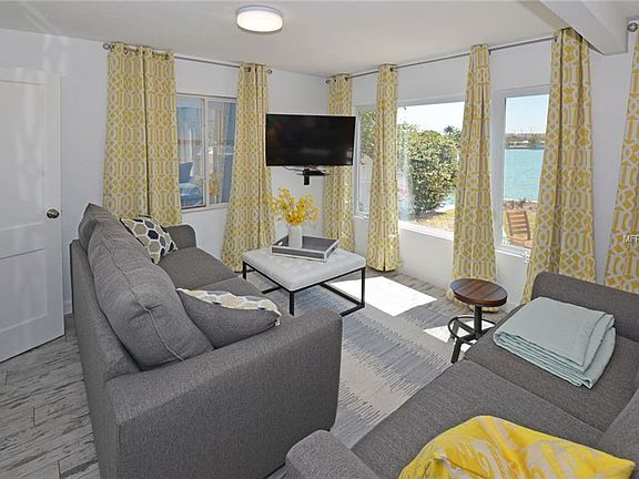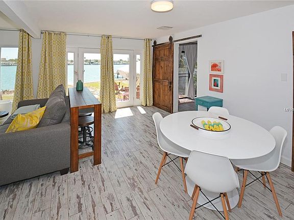 Short Term Rental, starting November 1, 2019, 1 month minimum, depending on the season. Live the "Island Life" in this magical retreat located in a laid-back neighborhood of Sunset Beach, Treasure Island. Looking for a house on the water, yet want to be able to walk to the beach?Look no further.The best part of this adorable cottage is the perfect location, walk to the beach, nearby nightlife, shops, local restaurants. Two vintage bicycles for peddling around the island. This charming two bedroom, two bath, cottage has just been renovated and features all new furnishings. You will enjoy a 1 car garage, with 3 additional parking spaces, and a spacious waterfront backyard with dock and fire pit overlooking the beautiful Blind Pass Intracoastal waterway. There are 2 bedrooms, a great room, dining room, kitchen, and 2 bathrooms. This cottage is ideal for 4 guests, but can accommodate up to 9, if you have some visitors during your stay.It has two king size beds (brand new gel/memory foam mattresses), one queen sleeper sofa, one full sleeper sofa, and a pullout twin sleeper chair. Only a five-minute boat ride to the Gulf of Mexico, and just one block from the pristine sugar sand of Sunset Beach. This home is perfect for easy living and relaxation. The fully stocked kitchen is supplied with melamine and porcelain dishes, martini and juice glasses, and very unique items to make your stay extra special. The updated kitchen also features a breakfast bar and all the kitchen appliances you will need.