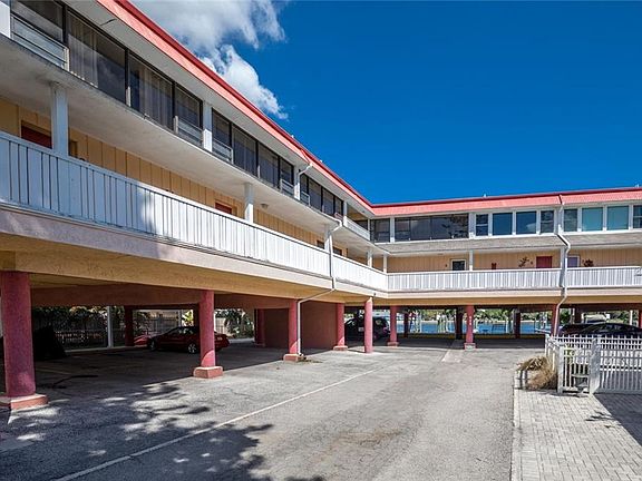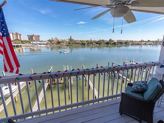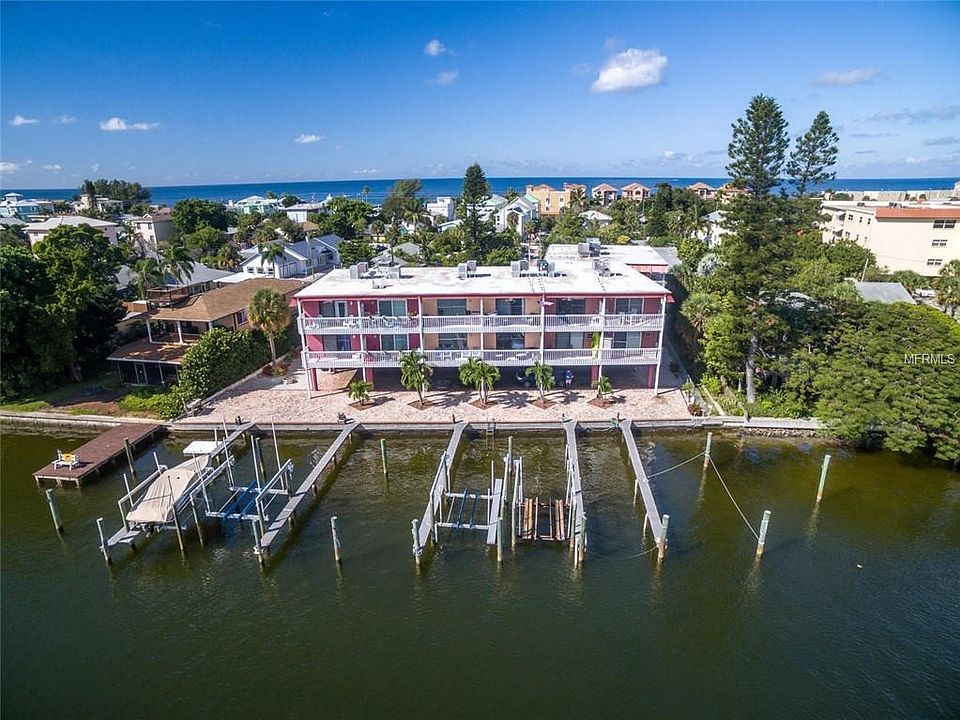Enjoy breathtaking easterly water views from this beautiful 1 BR, 1.5 BA 2-story condo and enjoy the Florida lifestyle like you are on vacation every day. Highlights include: use of boat slip with convenient access to the Gulf and Intracoastal, private balcony on both floors with superb water views, remodeled kitchen with beautiful white cabinetry and newer stainless steel appliances, newer laminate wood flooring, California closet system, roof- 2016, AC-2013, newer full size washer/dryer, and assigned parking space under building. The boat slip may accommodate up to a 30' boat (will require a 1-time fee for the transfer) and allows for installation of a boat lift at owner's expense. Water & electric is available. Located just 5+ minutes' walk to the beach, a variety of restaurants and the Suncoast Beach Trolley, this waterfront condo offers so much value for the money. Unit #5 is also available for sale, same size, same price, with a 2nd bedroom added/converted, and has a tenant in place until 4-30-20. The low $425 monthly fee includes maintenance of the grounds, roof, building insurance, water, sewer/trash, and a portion is allocated to the escrow reserves fund, total 9 units. Up to 2 pets totaling 50 lbs are allowed (no aggressive breeds). Minimum lease period is 1 month. Great price for all this waterfront condo with use of a boat slip and just a short walk to the beach has to offers.
