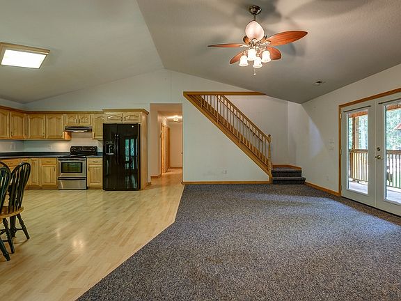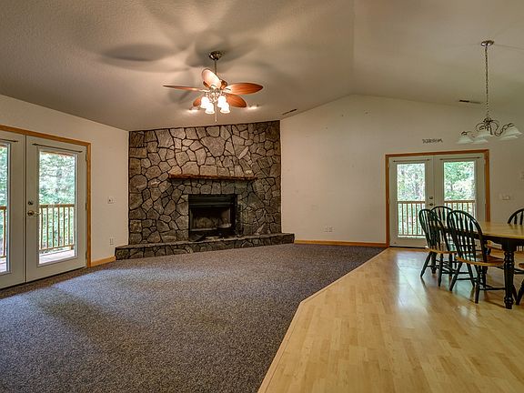 Dual Master Suites make your huge home perfect! One suite on the main and the second completely private master suite with shower and luxurious jetted tub upstairs. 3rd bedroom and full bath, Great Room featuring a wood burning fireplace so large it creates a wall of rock, spacious kitchen including double pantry and dining area complete the main level. You'll love entertaining or relaxing in this home; especially, downstairs in your supersized rec room including a pool table, half bath, and wet bar. Home includes roomy storage shed with side bay for ATVs and more. Circular driveway for easy in/out. A true wrap-around porch to enjoy some R&R and nature. Come here and you'll be coming home!