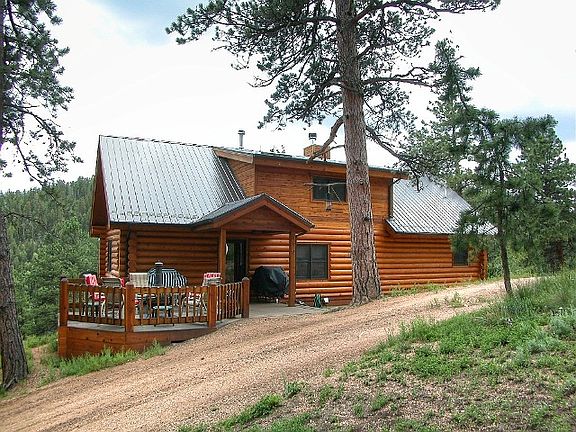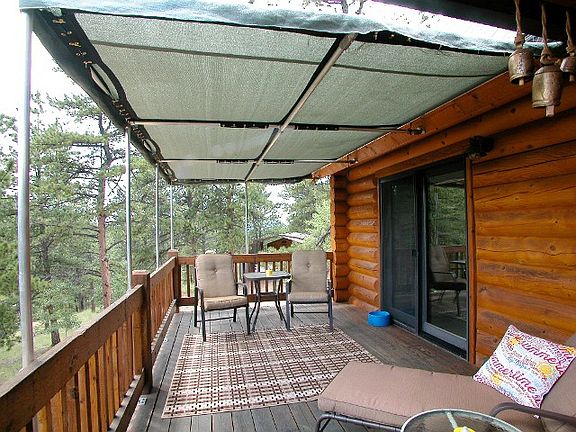 Tastefully finished and impeccably maintained custom log home with all the upgrades and amenities you could wish for in a cozy mountain setting. Soaring beamed ceilings and abundant windows let in the spectacular views, while the centrally located stone fireplace and radiant in-floor heat offer warmth and comfort. Year-round access makes it the perfect year-round home or base camp for all the wonderful recreational opportunities nearby, including Pike National Forest, 11-Mile and Spinney Reservoirs and many ski areas within 90 minutes. Or just relax on one of the many private, sheltered decks and enjoy Mother Nature. Quiet and secluded, yet just a short commute to Woodland Park or Colorado Springs.