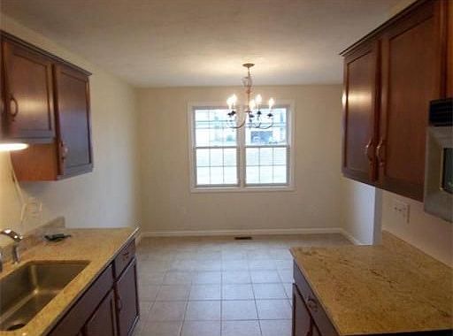 End-unit Townhouse in " Forest Edge at Sutton" with nice private setting with spectacular views from rear deck. There is a huge level, grassy side yard. Large unit with 2,294 sq ft of living area. First floor has dramatic cathedral ceiling living room with fireplace and new wall to wall carpeting and dining area plus balcony. Bedroom that could be used as a first floor master plus full bath, laundry area plus 1/2 bath. Eat-in kitchen with granite counters, stainless appliances and tile flooring. Second floor has huge bedroom with full bath and large loft. Central air, 2 car garage plus a large, unfinished walkout basement with 3 double-hung windows (great potential to finish).