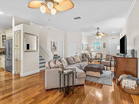 **COASTAL LIVING * WATERFRONT COMMUNITY** This Key West Inspired Townhome is located in the GATED WATERFRONT COMMUNITY of BAREFOOT COVE. Beautiful kitchen features Stainless Jenn Air Appliances, Induction Cooktop, Soft Close Cabinets and Drawers and Granite Countertops. Crown Moulding and Planation shutters on all windows. Accordion Shutters on Windows. The Owner's Suite has a Jacuzzi Tub and a Step in Shower in Bath plus 3 Closets including one huge walk in Closet. Washer & Dryer Upstairs for your convenience. The back patio area has an extended patio along with a Retractable Awning. 1 Car Garage Plus 2 Cars can fit in Driveway. Steps to the pool overlooking the Intracoastal! Swim or relax and watch the boats go by on the water. Maintenance includes Exterior Insurance Plus Flood.