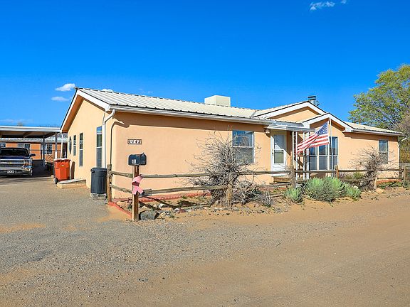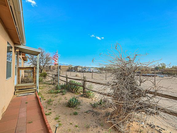 Welcome home to this beautifully kept 3 bedroom, plus an office in the primary suite! The master bathroom boasts double sinks, a walk-in shower, and a wonderful soaking tub. The extra bedrooms are spacious and flow nicely with this open floor plan. The living room and kitchen are open-concept. The kitchen has plenty of storage with beautiful oak cabinets. If you walk out onto the back covered patio you can soak up the coveted Corrales landscape and view of the Sandias. This private one-acre lot is situated on a quiet road with a cul-de-sac. This home offers plenty of room for gardening and don't forget your horses! If you want all the benefits of Corrales: Views, land, and beautiful home then schedule your showing today- it won't last long!