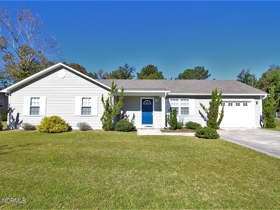 3 bedroom 2 full bath home completely rebuilt in the spring off 2016. Located in the friendly community of Bay Woods subdivision. Living room is opened to the dining and kitchen area, perfect for entertaining family and friends. Well thought out layout in the kitchen will make whipping up meals a breeze, with access to rear patio, garage and a window over the kitchen sink looking out into the rear yard. Beautiful wood cabinetry and ample counter space along with the breakfast bar will work for any family! Wood look laminate floors are in the highly traffic arears of the home - the Kitchen, dining and hallway. The Living room and bedrooms offers soft cozy carpeting for the toes! Master bedroom features dual closets and a full private master bathroom. Large rear yard is a great place place for both the kids and the 4 legged family members to run and play. This beautiful home has been well maintained and just waiting for its new family to move in and enjoy the upcoming holidays!! Minutes to Cherry point air base, beaches, shopping and entertainment!