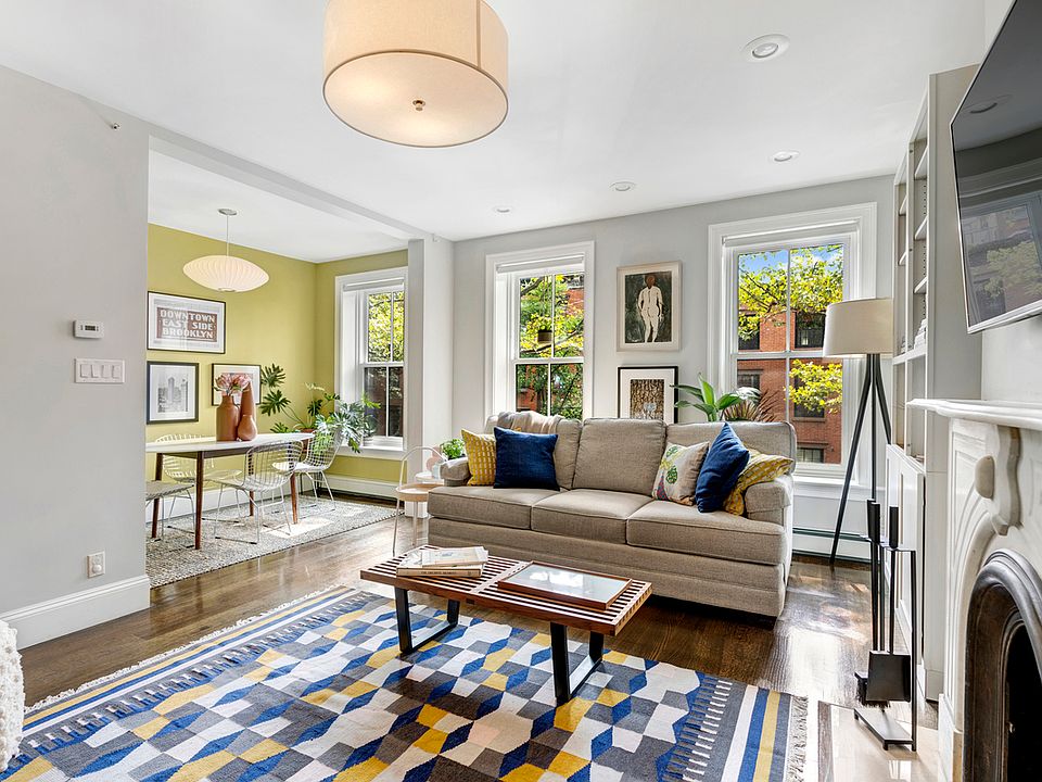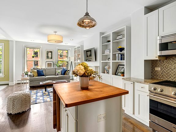 Boerum Hill Beauty! 2BD 2BA Condo on Bergen St. on a Prime Tree-Lined Block Own a beautiful, bright piece of Boerum Hill in this two-bedroom, two-bath pre-war condominium at 143 Bergen Street. Located on the second floor (just one flight up from the stoop) of a Federalist style townhouse, this spacious and practical pre-war home offers an appealing mix of classic elegance and modern flair, all nestled within a landmarked block in a prime Boerum Hill location between Hoyt and Bond. Spread out while you entertain your guests throughout the open-plan living, kitchen, and dining room layout. Or cozy up near your original wood-burning fireplace, sure to keep your wintry nights warm and toasty. With three large double-hung windows facing south, your entire living area is bathed in sunlight from dawn to dusk. The alcove in the third bay, currently used as a dining room, can also easily convert to a home office or even a third bedroom, offering ultimate flexibility if your needs change over time. The open chef's kitchen features an island with an expandable countertop, allowing for extra workspace and casual everyday kitchen-table dining.Your suite of top-notch stainless steel appliances includes an oversized Sub-Zero refrigerator, and a Viking stove, microwave, and dishwasher set. You'll enjoy abundant storage for all your cooking gear, with deep cabinets throughout the room and a pantry adjoining the refrigerator. And kiss the drop-and-fold goodbye: this home comes with your very own washer and dryer in the apartment, housed in a utility closet next to the pantry. Nearby you'll find a video intercom system in the hall. Your large, bright primary bedroom also features a large double closet with built-in shelving, storage above, and a separate, custom built-in wardrobe. A small private balcony, accessible from the primary bedroom and overlooking the quiet, verdant rear gardens of the adjacent Boerum Hill rowhouses gives you a spot to work out your green thumb. The primary bedroom is finished with an en suite full bath. The secondary / guest bedroom, also in the rear of the apartment facing north, is spacious enough for a queen bed, bunk beds, or a home office setup. With a double closet, it also features plenty of storage space. Off the hall is the guest bath, also decked out in a timeless marble tile finish, with a walk-in shower and built-in shelving for linens. Each room is equipped with split-system air conditioning, allowing you to regulate temperatures to your tastes in each room separately. Throughout this home, you'll find the accents and features that give pre-war homes their timeless appeal: hardwood oak strip floors, crown molding, high ceilings, and deep window sills. All this in a condominium, making your approval process painless and speedy. Pets are allowed, and the condominium is fully approved by multiple major lenders, ready to make financing a breeze. This central location in Boerum Hill offers speedy access to multiple subway lines including the F, G, 2, 3, 4, 5, A, and C, with multiple other letters of the alphabet just a short walk away at Atlantic Terminal. With the "restaurant row" of Brooklyn just a block away on Smith Street, dining, delivery and retail options abound. Email us today for a private tour, with all the necessary COVID precautions. You'll be well on your way to enjoying modern luxury in historic refinement.