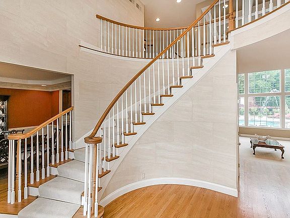 This Spectacular Custom Home features 9' Ceilings and Two Story Space, with Beautiful Angles and Woodwork and attention to detail... The First Floor Master design with windows galore allow for views of the amazing pool and yard from every room on the first floor. Both the Family Room/Kitchen space and Living Room boast two story space with Spectacular Windows and Fireplaces. The gourmet kitchen is Custom Cherry Cabinetry and includes Viking Appliances, a butler service area, walk-in pantry and huge island. The spacious Dining Room sits just off the Two Story Foyer with curved staircase and includes beautiul woodwork and moldings... The Owners Suite is gorgeous, with lovely sitting area that overlooks the pool and his/hers walk-ins and stunning Luxury Tile Bath. Upstairs there are double lofts that overlook the living room and family room below, Three awesome bedrooms, each with bath en-suite, and one has an extra room attached with walk-in that makes a perfect in-law space if needed.. The lower level has been finished into a cool Rec Room, complete with bar, possible 5th bedroom and another full bath. Amazing storage space with bult-in shelving and a Workshop is also in the basement and there is a second set of stairs that lead straight to the garage. The Landscape is perfectly maintained and the Fantastic Pool area feels like a resort!