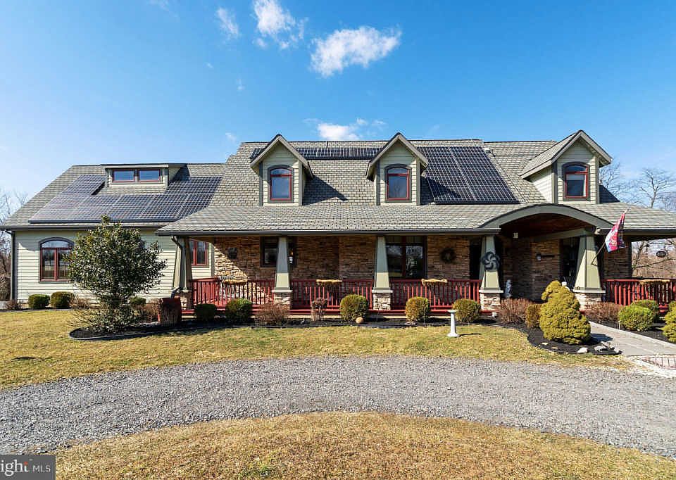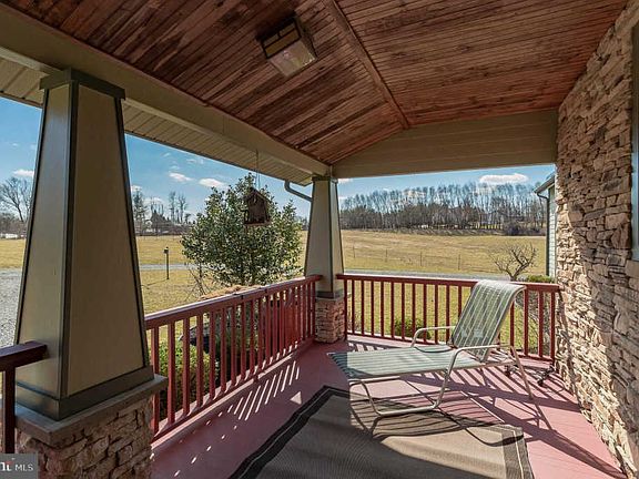 This Spectacular 10 year old two story custom craftsman home is tremendously appealing with over 3000 feet of Chinese Maple hardwood flooring and solid Cherry doors. The grand entrance to this home begins with the magnificent custom built wrap around porch featuring mahogany ceiling boards over floaters and exquisite stacked stone. Enter into the homes two story foyer. The Great Room highlights include a catalytic wood burning fireplace, with custom tile surround and mantel. Two oversized skylights bathe this room in natural light. The Dining room features a custom craftsman chandelier and sconces. The oversized gourmet kitchen will enrich any family meal or informal get together. All counter tops are composed of marble & limestone with ceramic tile backsplash. A 5 burner Viking stove top with wall pot filler, two dishwashers, an ENORMOUS Monogram refrigerator and freezer, Monogram double ovens, built in drawer microwave; trash compactor, complete this space. The adjacent Breakfast area overlooks the home~s elevated rear deck and grounds. The Sun Room with ceramic tile flooring is surrounded by two full walls of windows and a full sliding door out to rear deck. The first-floor master suite also has a sliding glass door that leads to its own private deck. There is an abundant custom shelved closet space and a pocket door entry into master bathroom. The master bath has a jacuzzi soaking tub and full-size shower. There are Double sinks in custom cherry cabinets with coordinating granite counter top and a skylight above jacuzzi tub. Upstairs you will be delighted with three additional bedrooms with oversized walk in closets. Bedroom number 4 is currently utilized as an office space. You will also find two additional baths, and a full laundry room with utility sink. Finishing off the second level there is an extra unfinished room over the garage, 28~ x 14~, that is pre-wired and set for heat/AC. The unfinished lower level walk out basement has 10 ft ceilings and is plumbed for both a kitchen and a bath. All this on over 2 acres of land adjacent to preserved open space