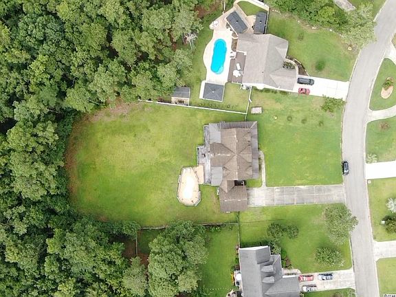 Don't miss your opportunity to own this unique home located on 3.6 acres in a central area of Myrtle Beach. This cabin inspired property has vaulted ceilings with wood beams, polished concrete floors, stone accents throughout and a concrete tile and metal roof. From the open concept kitchen, living room and dining room, your eyes will be drawn to the two story stone fireplace and windows with amazing views out back to your private wooded lot. Stepping out on to the deck, you can enjoy the outdoor wood burning fireplace and in-ground salt water pool. Back in the home you will find a large main suite with walk in closet and a bathroom with a jetted tub, walk in shower and dual vanity. The main suite also has a sitting room on the rear of the home that has amazing views of the back yard. Upstairs you will find two additional bedrooms and bathroom with a loft area overlooking the living room. There is a second bedroom located downstairs that contains a private full bath and could surely be utilized as an office, media room or in-law suite. Crossing behind the kitchen and through the oversized laundry into the two car garage, you will find an exit to the backyard with a shower for rinsing off after stepping out of the pool. Above the garage there is a bonus room with a full bath attached that could be used as the 5th bedroom. This home has tremendous potential to be used in so many ways and just needs a special touch to bring it back to life. Square footage is approximate and not guaranteed. Buyers responsible for verification.