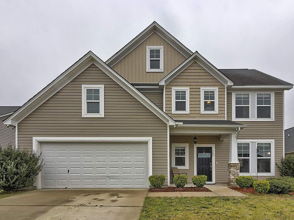 Welcome to your move in ready home! Spacious two-story Craftsman style home with master on the main level. 3 additional bedrooms upstairs. The large 4th bedroom could also be a mancave or media room! A full bathroom is also located upstairs. A nice sized half bathroom for guests is also located on the main level. The wide open, large kitchen has a pantry, large island, stainless steel appliances, granite counter-tops, a bar overlooking the great room, which also features a well maintained gas fireplace. The spacious master suite has a boxed ceiling with an elegant bath, dual vanity and garden tub with a separate shower. Crown molding throughout the home. This home has been recently painted, with new flooring downstairs. Make this your family's new home today! Security cameras! Virtual showings at request!