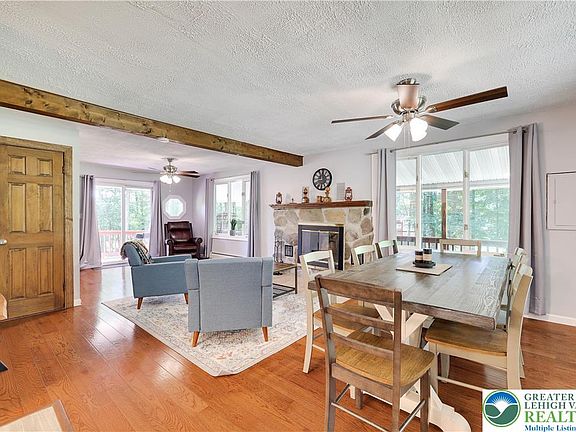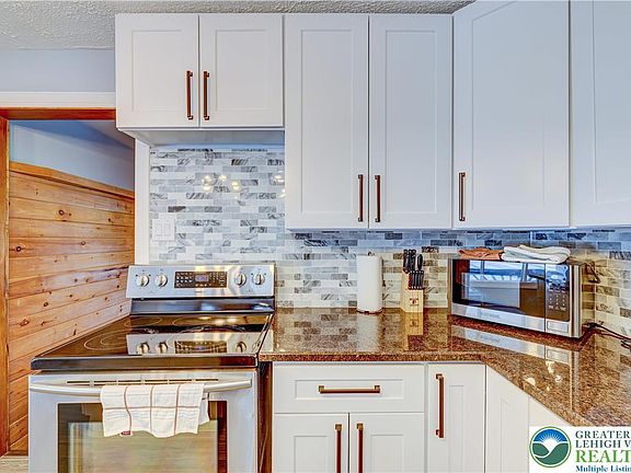 This STUNNING TURN KEY FULLY FURNISHED HOME sitting on over an ACRE of LAND completely RENOVATED with CUSTOM UPGRADES: GRANITE AND TILED KITCHEN, center ISLAND, CUSTOM BATHROOMS, TILED/ HARDWOOD FLOORING throughout the house, GEORGEOUS WOOD PLANK WALLS making you feel at home as soon you walk in. Huge PRIMARY SUITE with walk in closet and PRIVATE BALCONY. Large LIVING ROOM with NATURAL STONE FIREPLACE TO cozy up after a day of skiing, MEDIA ROOM, POOL ROOM, SAUNA to reduce daily stress or just RELAX with friends on weekends. BEATIFUL wrapped around covered PORCH to enjoy hot summer nights. Did I mention the OVERSIZED 2 CAR GARAGE with GAME ROOM/ WORKSHOP above. House is filled with NATURAL LIGHT. Don's miss this one. Heart of the Poconos minutes from all Major Attractions and only 2 hours from NYC. Close to Rt 80, shopping, Mt. Airy Casino, minutes away from water parks: Kalahari Resort, Camelbeach, Aquatopia, Camelback Skiing resort, state parks, water sports, hiking, fishing, and more.