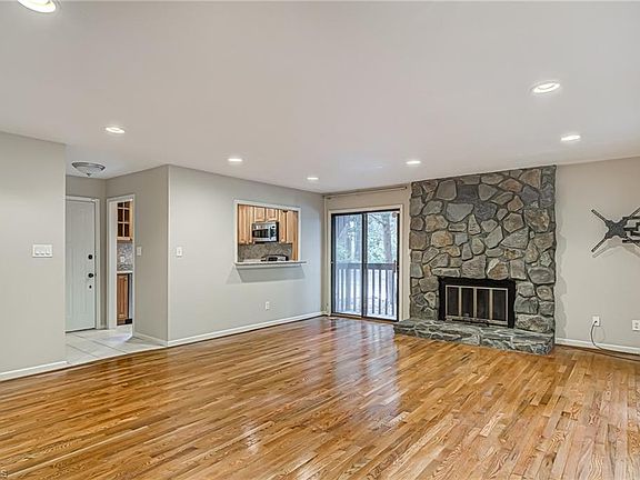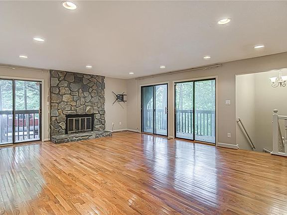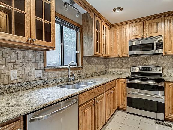 Spacious end unit with two balconies and a deck in wooded Cedar Lakes neighborhood. Walk into this condo and you feel like you are in a cozy, quiet mountain retreat. The updated kitchen opens up to a large living room with a stone, wood burning fireplace as the center piece. The primary bedroom is on main level with bathroom that has double sinks. Second bedroom is also on the main level and it's full bath doubles as the guest bathroom. Walk down the stairs into the massive basement with full wet bar, stone fireplace, and an additional room that could be used as an office, movie room or music room. The basement opens to a back deck that is perfect for summer entertaining!