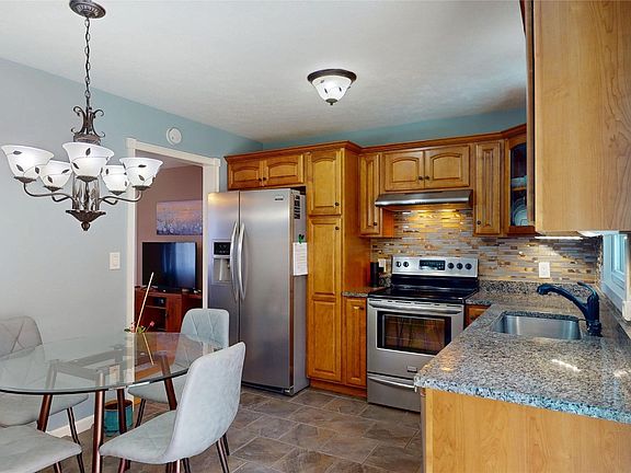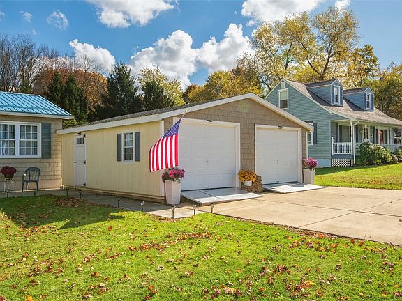 Charming and meticulously maintained ranch-style home with thoughtful updates throughout. Set on a large, landscaped lot with a mature tree line, this move-in ready property offers curb appeal and exceptional outdoor living. Inside, you'll find hardwood and tile floors along with a spacious family room and a well-appointed kitchen featuring generous cabinetry and storage. The finished basement adds incredible versatility, ideal for a fourth bedroom, recreation room, home office, etc. Notable upgrades include a newer metal roof with snow guard (2023), seamless gutters (2019), new sidewalk and under deck enclosure (2025). Outdoor living shines with this home's impressive amenities: a 24x24 garage/shed with dual garage doors and openers, an additional 10x20 shed complete with a sitting porch, electricity, ramp for easy storage, an expansive deck and a cozy patio with a built-in fire pit. Perfect for entertaining or relaxing evenings! Truly a special property you won't want to miss.