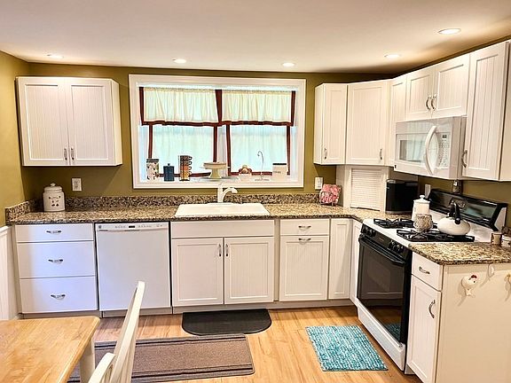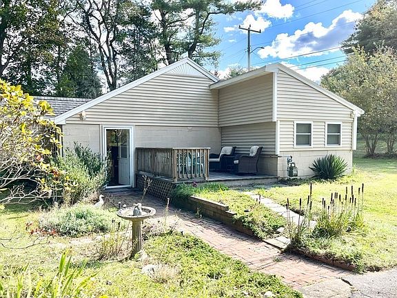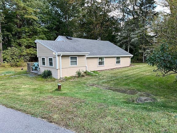 Absolutely adorable and unique, this 1 owner, single level home was completely renovated down to the studs in 2012. Features include: eat-in kitchen with white cabinets, granite countertops w/ double sink, soft-close draws and slide out shelving; Primary bedroom w/ walk-in closet; Updated bath w/ laundry; Family room has a built-in faux fireplace; generous size deck. New flooring through-out; Natural gas heating system; Central Air; New septic installed in 2011, title V in hand. Sitting on just shy of an acre, surrounded by beautiful plantings that will be enjoyed though-out the seasons. Plenty of storage in attached shed & additional shed in back. Perfect starter home or someone looking to downsize. Easy to show!