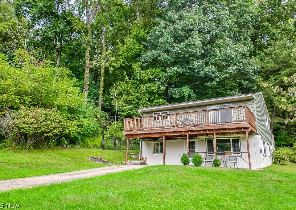 Enjoy resort style living in the beautiful gated community of Lake Mohawk, featuring an executive style 9 hole golf course, tennis courts, 500 acre spring fed lake with 3 beaches and unlimited horsepower boating! This well maintained 3 bedroom, 2 bath home would make a great vacation property or year round residence with its partial lake view. The covered patio entrance leads into an open and inviting rec room that's already plumbed for a wet bar! The main level also offers a bedroom and a full bath with a convenient shower. Upstairs, there's a spacious living room with new Shaw luxury vinyl flooring plus a new patio door to access the deck with views of the lake. The kitchen offers stainless steel appliances and a new sliding door that opens to a back deck and a recently fenced yard with a shed for storage. Two more bedrooms share another upgraded full bath with tub/shower combo. Nicely updated with new flooring, kitchen, upstairs windows, exterior doors and 200 amp electric plus a ne