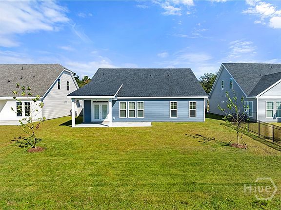 Savannah's trusted buil der is offering the Roxboro plan. This 3BR, 2.BA ranch home is 2,080sqft has a very spacious and open concept design. Gourmet kitchen boasts expansive granite counters, French door stainless frig, flat electric cooktop, double ovens, and 42" upper cabinets, & is finished with beautiful flanked island pendant lights. It's open to the cafe area & great room. The primary suite includes a bathroom w/6' walk-in tiled shower. Double vanities. All baths have quartz countertops and framed mirrors. Gorgeous click plank flooring is in main living areas, tile in the baths and laundry. BRs are carpeted. Home has a level 3 ADT security system (not monitored). The exterior has a 12x12 covered porch, sod, landscape beds and irrigation. Home is complete and move in ready.