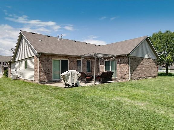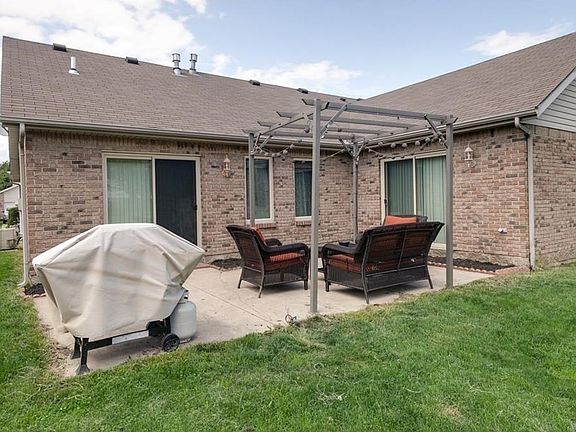 This is a hard-to-find brick ranch with 1655 square feet, 3 bedrooms, 2 full baths, and the open floor plan youâve been looking for! Built in 2002 as the model for the development, this home has lots of extras, including: a dramatic entry with a coffer ceiling and pillared entry to a huge 22x19 great room, vaulted ceilings, overhead plant ledges, gas fireplace, slider access to the large patio from the dining area AND the master bedroom. Thereâs ceramic flooring in several rooms, extra cabinet and pantry space in the kitchen and laundry room, over-sized walk-in closets, a finished garage, and a skylight in the master bath, too. You must see this home!