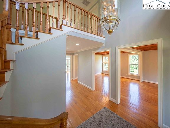 Lovely, well-maintained home on Green Hill Road, Blowing Rock. Excellent location on the edge of Blowing Rock, outside the city limits, so only Watauga County taxes apply. Recessed entrance has handsome stone walls and pavers. Hardwood floors are found throughout the main level. Home has coffered ceilings in the formal dining and gathering rooms, an open floorplan, kitchen with seated bar, granite counters, handsome cabinetry, and a great room with tall ceilings, plus a stone floor to ceiling fireplace. Ceramic tile half bath. Primary bedroom is on main level with ceramic tile bath, whirl pool tub, double vanities, water closet and shower. Upstairs has a comfortable mix of hardwood floors and carpet. There are two bedrooms with en-suite baths. Another room functions as a bedroom/office and another full bath. Large bonus room over the garage. Basement is plumbed and framed with a second floor to ceiling stone fireplace for future expansion of additional heated sq. ft. The house was built by Earl Ford.
