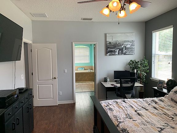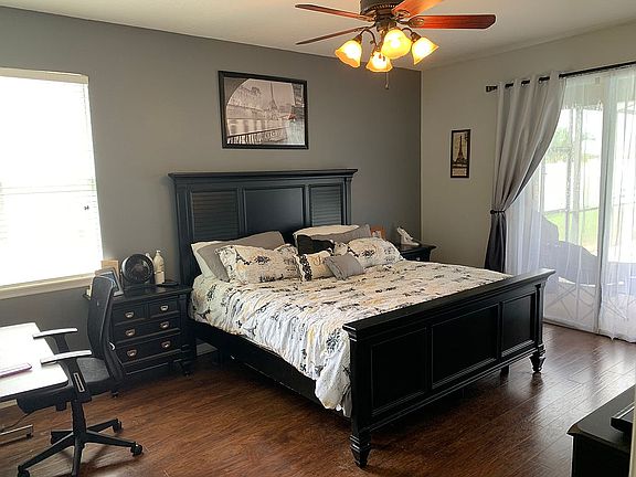 • Interior Features: Ceiling Fans(s), High Ceiling(s), Open Floorplan, Split Bedroom, Walk-In Closet(s), Crown Molding, Solid Wood Cabinets, Kitchen/Family Room Combo, Window Treatments