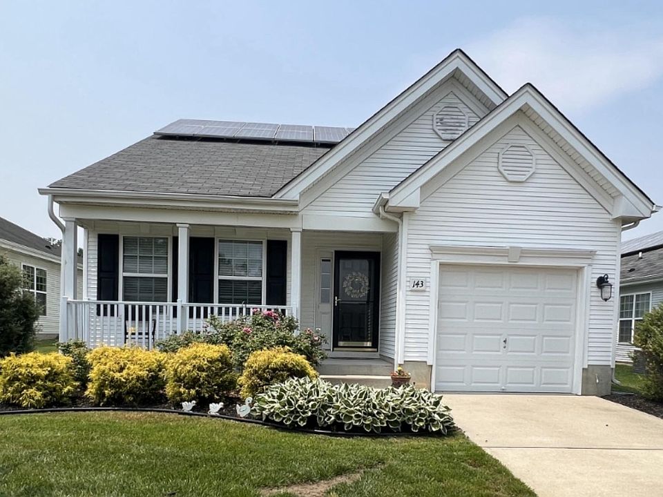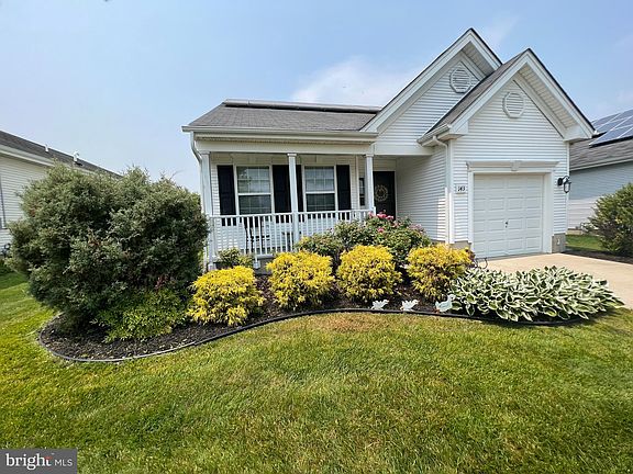 OPEN HOUSE SATURDAY 6/10 from 10am-12pm. WELCOME TO THIS SUPER IMMACULATE, beautifully landscaped, 2 bedroom, 2 full bath home located in the 55+ community of Four Seasons! As you approach this home, you will be pleased by the lovely curb appeal and the welcoming front porch. Picture yourself sitting out there enjoying your favorite beverage and the peacefulness of this quiet neighborhood. Enter the front door into the large tiled foyer area which leads to a sparkling shiny hardwood floor throughout the open concept living space and both bedrooms. You will find a nicely sized bedroom on the left off the foyer with a roomy walk-in closet. Next on your path is a full bath with tile floor and walk-in shower. Follow the hardwood to the living room or take a left into the beautiful tiled kitchen with all stainless steel appliances, recessed lighting, and a double level peninsula/breakfast bar for plenty of cooking and eating space. Notice the unique lighting above the peninsula and dining table and the natural light beaming in from the large windows surrounding this space. The kitchen is completely open to the dining area and spacious living room with a gas fireplace to warm you in the winter and a ceiling fan to cool you down in the summer. Off the main living area to the right, you will find the primary bedroom featuring a full bath with tub/shower combo and large walk-in closet with built-in organizer shelving systems. Let's not forget the extra large laundry room which includes washer, dryer, newer tankless hot water heater, and cabinets for extra storage space. This would be a convenient mudroom as there is a door to the attached garage with rubberized flooring. Head back through the living room to the back door which leads to a concrete patio with an electric retractable awning for shade during those sunny hours of the day. The home is also equipped with solar panels to minimize your utility costs. This community has so much to offer! Venture out to the huge clubhouse which boasts a fitness center, kitchen, billiards, and game rooms. Relax at the refreshing in-ground swimming pool with seating areas or try your hand at tennis, pickle ball, or bocce ball. So many choices to keep you entertained! This pristine home is move-in ready for you! Just pack your bags and make yourself at home! More pics to come!