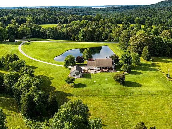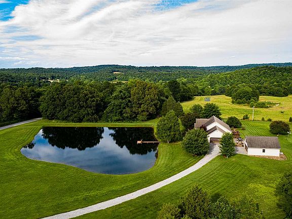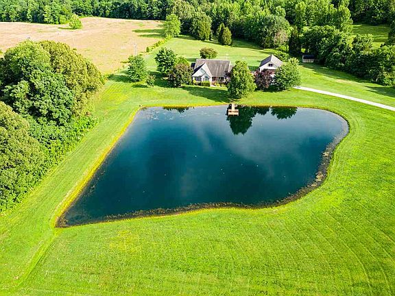 Country Living at its best with 8 acres for wildlife and a beautiful pond in front for fishing or relaxation. This 3 bed, 2 bath features vaulted ceilings, large walk-in closet and separate shower in master bathroom. Has an office with the beautiful view of the pond. Very well maintained landscaping adds to the aesthetically pleasing views from every part of the house. Nice covered porch overlooks the private dock extending into the gorgeous pond. Enjoy the mornings and evenings sitting on the nature aided deck while drinking coffee, grilling or relaxation. In addition to the attached 2 car garage is a detached 2 car garage with a work station and a 12x32 finished room above.