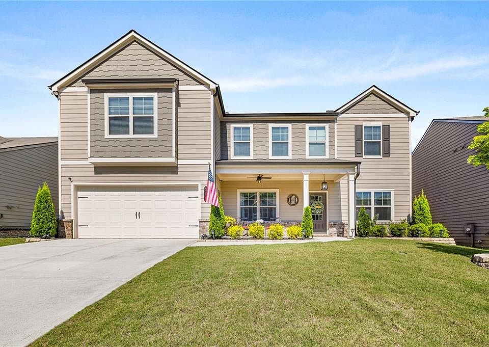 Seller has an ASSUMABLE LOAN on this home with full of design and upgrades. This 5-bedroom 3 bath home offers plenty of space for a growing family. Walk into the foyer that is connected to a beautiful dining room and office. Open concept living to include a large eat in kitchen with island and large living room, great for entertaining. The 5th bedroom is on the main connected to a full bath. Go upstairs to your master bedroom oasis. The master bedroom has a large sitting area to unwind after a long day. The bathroom has a double vanity which leads you into the massive walk-in closet. There are 3 extra bedrooms, a full bath and nice loft with endless possibilities. Nice covered front porch with landscaped front yard. The back yard is nice and level with a great fire pit to sit around with friends. The neighborhood has a great pool the kids will love and a clubhouse with a nice gym.