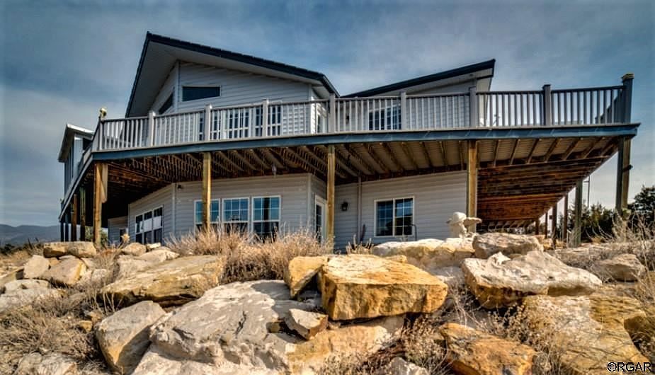 Enjoy Absolutely Stunning Views of the Royal Gorge Bridge and the Sangre De Cristo Mountains from the Wrap Around Deck of this Beautiful Mountain Home. Just Minutes from Canon City, this 6 Bedroom, 3 Bath Home is the Perfect Place to Get Away From it all. The Large Open Floor Plan Features Picture Windows to Enjoy the View Inside ~ Or Enjoy the Peace and Tranquility from the Two Main Floor Screened in Porches. The Kitchen has Gorgeous Cabinets, Double Oven, Convection Stove and a Large Granite Covered Island Making Cooking a Pleasure. The Main Floor Master Bedroom boasts a large 5 piece ensuite Bathroom. The Spacious Walk Out Basement Has a Cozy Wood Burning Fireplace and More Windows to Take in the Views. There is another Master Bedroom in the Basement that is currently Being used as a Game Room ~ the Pool TableStays with the House! The Detached 3 Car Garage has Tons of Storage and an Attached Heated and Cooled Shop. This amazing Property also includes a 3456 Sq Ft Cleary Building with an Additional Heated Living Room, Two Bedrooms, Bath and Partial Kitchen ~ all with its own Electricity, Well and Septic.
