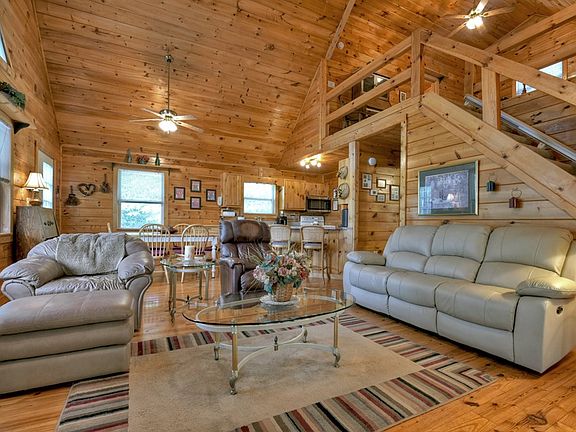 Step into this enchanting traditional style retreat, featuring a spacious front porch with side screened in for those beautiful sunsets with partial long range mountain views! This home is nestled on 2.7 acres with opportunities galore on outdoor space to enjoy doing whatever activities you love! This open floor plan offers plenty of entertainment areas for those fun gatherings! The upper level offers a spacious loft overlooking the family room area. The terrace level offers the opportunity for a separate living space for an apartment featuring its own entrance. The potential goes on & on for this home with a workshop w/electric that could be used as a bunkroom. There is also a storage shed and a newly installed asphalt driveway with ample parking space for guests. The furnishings are included! This property is close to Fightingtown creek and 15 min from Blue Ridge, making it perfect for an Airbnb. Home was just pressure washed and the owner has maintained it very well!! Must see this one to appreciate it!