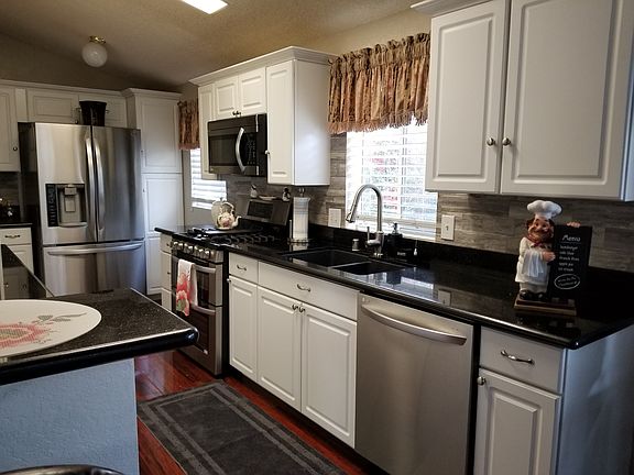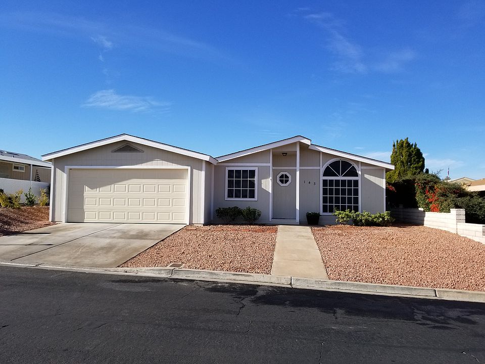 THIS IS A 55+ COMMUNITY. LOT/SPACE RENT IS $757.10 PER MONTH AND THERE IS NO HOA FEE. This ABSOLUTELY STUNNING home has undergone a total renovation. During renovation it was upgraded to a modern contemporary styling, which is very difficult to find in a manufactured home. Here are just a few of the outstanding features of this home: - This vaulted ceiling home features both natural gas & electricity - Home has been newly painted inside and out - Has new custom-made Solar screens - Entire house comes with new 2" Faux wood blinds - New Cherrywood Flooring throughout living room, dining room, kitchen & hallway - New Kitchen Cabinets with black granite countertops plus brand new backsplash - Three year old upgraded LG appliances, refrigerator, dishwasher, microwave, gas stove, plus washer & dryer - Granite countertops and brand new ceramic tile flooring in both bathrooms - Brand new shower door in guest bath - French Doors into den - Brand new Carpet in all 3 bedrooms - Laundry Room has new ceramic tile floor - Brand new 18' x 11' Aluminum Awning Patio Cover with newly installed latice - Natural gas Fire pit & BBQ in patio - Two Car Garage with brand new garage door - Garden tub in master bathroom Active Clubhouse with Sauna, Billiards, Gated Resort Style Pool & Spa, BBQ's, Fitness Center, Tennis Court, Putting Green, RV Parking, and Dog Park This ABSOLUTELY STUNNING!!! home has undergone a total renovation. During renovation it was upgraded to a modern contemporary styling, which is very difficult to find in a manufactured home. Here are just a few of the outstanding features of this home: - This vaulted ceiling home features both natural gas & electricity - Home has been newly painted inside and out - Has new custom-made Solar screens - Entire house comes with new 2" Faux wood blinds - New Cherrywood Flooring throughout living room, dining room, kitchen & hallway - New Kitchen Cabinets with black granite countertops plus brand new backsplash - Three year old upgraded LG appliances, refrigerator, dishwasher, microwave, gas stove, plus washer & dryer - Large den - Granite countertops and brand new ceramic tile flooring in both bathrooms - Brand new shower door in guest bath - Garden tub in master bathroom - French Doors into den - Brand new Carpet in all 3 bedrooms - Laundry Room has new ceramic tile floor - Brand new 18' x 11' Aluminum Awning Patio Cover with newly installed latice - Natural gas Fire pit & BBQ in patio - Two Car Garage with brand new garage door Active Clubhouse with Sauna, Billiards, Gated Resort Style Pool & Spa, BBQ's, Fitness Center, Tennis Court, Putting Green, RV Parking, and Dog Park To see a video, please go to Website: www.mhvillage.com Listing ID #1825828