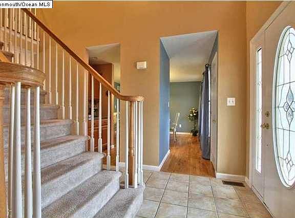 Beautiful Center Hall Colonial located on quiet Cul-De-Sac in South Hampton Crossing. 2 story foyer.Gourmet kitchen w/center island, large family rm.wood burning fireplace. Generous size bedrooms with closets galore.Full bath on a first floor. Full finished basement w/1/2 bath. Gleaming hardwood floors, build in cabinetry for the wine loving enthusiast. 40x20 deck w/electric awning and hot tub,completely fence in yard,2 car garage, double wide driveway. Close to major roads, beach and shopping.