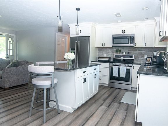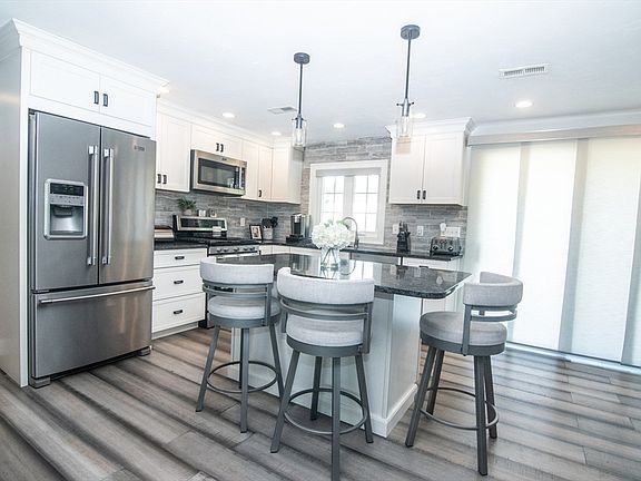 • Features: Flooring - Wood, Countertops - Stone/Granite/Solid, Kitchen Island, Cabinets - Upgraded, Deck - Exterior, Exterior Access, Open Floorplan, Recessed Lighting, Remodeled, Slider, Stainless Steel Appliances, Gas Stove, Lighting - Pendant