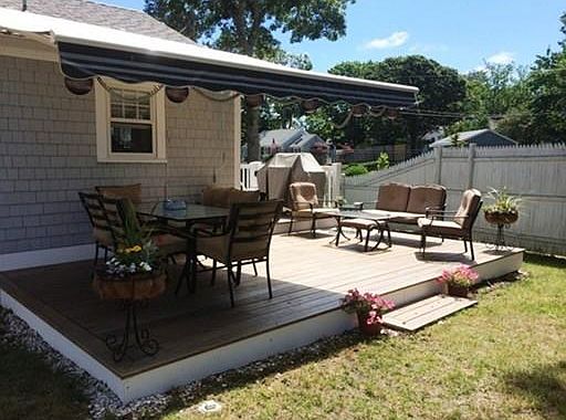 Furnished charming free standing Cape Cottage condo located in small complex south of route 28 with built in pool and picnic area less than one mile from beach. Fenced in large private backyard with deck. Updates include roof, windows, Azek trim, gutters, siding, electrical, kitchen, decks, power awning and parking area. Electric heat for those cool fall evenings. Great rental potential. Measurements are approximate and buyer is encouraged to verify at the property.