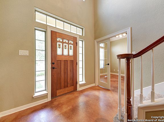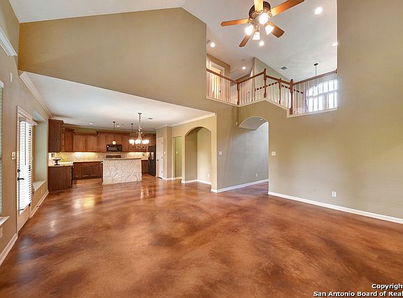 Enjoy small town living in your charming 5 BD/3 BA home in the heart of Boerne! This home offers high ceilings & open floor plan from the kitchen to the living area. Entertain easily w/large patio, lights & stone seating area in back. Master Bdrm down w/outdoor patio access. Carpet installed upstairs May 2019 w/stained concrete flooring on main level. Study or 5th BDRM w/full bath down.Bonus/4th bdm up. Located on a cozy cul-de-sac w/in walking distance to BISD schools, walking trails, restaurants & shops!