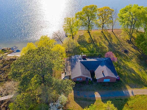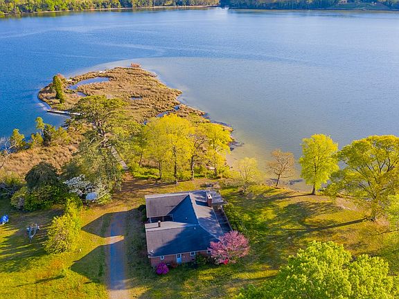 Breathtaking180 degree water views over Piankatank River and gorgeous sunsets await you at Drum Point. Sandy bottom waterfront (approx. 1,200 ft.) and two beach areas are ready for summer fun. Property consists of 3.45 acres including private peninsula for viewing wildlife in its natural surroundings. A vintage crab shack (as is) and a deep-water pier add to the ambiance of this amazing waterfront location. House is sited in FEMA Zone X. Vertical clearance below the Twiggs Ferry Bridge is approx. 42'. The 3 bedroom, 2 bath brick home features one-story living, a spacious great room with fireplace and huge wrap-around deck for outdoor entertaining. Watch the sunset with friends and family. Attached garage has generous storage space. Additional small storage shed for garden tools. Make this your special Rivah get-a-way or retirement home by adding personal updates to interior and grounds. Bring your boat, jet skis, crab pots and fishing poles. Plenty of space for garden. Convenient location within minutes of Middlesex YMCA, Piankatank River Golf Course and Steamboat Restaurant. Excellent proximity to Routes 3 & 33.