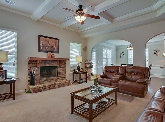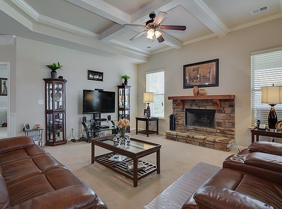 The William 2 floor plan features 5 bedrooms and 3.5 bathrooms plus a spacious media room. Open floor plan. Coffered ceiling and stone fireplace in the Great Room. Kitchen features granite counter tops. Stainless Steel appliances, island and butlers pantry with a wine rack. Large owners suite with huge upgraded closet located on main floor. Jack and Jill bathroom between bedrooms 4& 5. Good size bedrooms with covered back porch. Beautiful corner lot with side entry garage and so much more!