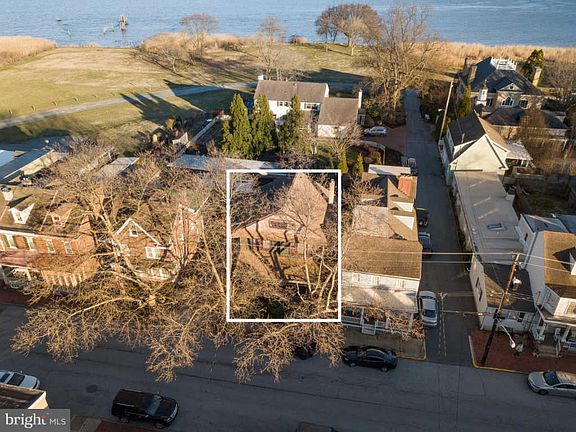Volumes of charm in this 1917-built Victorian home in heart of historic New Castle! Appreciate endless water views in this 5BRs/3 bath 3-levels of living home, where earlier-era architecture was preserved and beautifully blended with today~s modern-life amenities. Splendid covered front porch with porch swing sets tone for distinguished hunter green shingle, burgundy column, pebbled stucco and brick home on tree-lined street dotted with brick sidewalks and lamp posts. Walkable to town, shops, cafes and Battery Park. Grand 12 x 10 foyer where rich, dark hardwood floors, ornate millwork, turn staircase and 9-ft.-ceilings welcome you, while exposed radiators, glass door knobs, deep-inset windows and original hardwoods/trim were maintained. Oversized entrance grants access to main area where LR and DR are open to each other, yet have defined space and characteristics. LR boasts wood-burning FP and DR has room for sweeping DR table and multiple chests. Renovated kitchen has contemporary flair! Gun metal gray cabinets finished-to-ceiling with intermittent open shelving highlights granite countertops, cream appliances and ceramic tile backsplash. Off kitchen is space-saver pocket doors that lead to full bath with white-washed beadboard, vanity and tub/shower. Opposite, W & D reside and gray ceramic tile floor leads out back door to picturesque fenced-in backyard with trellis, bench, walkway and glimpses of river. Kitchen wraps around to foyer, creating circular floor plan. Staircase leads to 2nd level where 4 BRS fan out. BR1 has all the bells and whistles including original hardwoods, crown molding, extra-wide baseboards, built-ins, and gorgeous bay window with window seat and water views. Relax and be lulled by rhythm of the river. Natural wood door leads into adjoining BR, which also has hall entry. This BR and BR3 have bay windows as well, while BR4 features triple window. BRS are large, light-filled and utterly charming with hardwood floors and sizable closets. Aqua-marine bath on this level has DD vanity with extended make-up area, white beadboard, crown molding, tub/shower and dual-stacked built-in cabinet. Perfect guest suite on 3rd level with BR of sage green paint/beadboard, full wall of windows facing river with built-ins below, and angled ceiling. Plus, full bath with ceramic tile floor, shower and white beadboard. Bonus dressing/retreat room with window seat to unwind, decompress and enjoy small-town sounds. Old-world charm with new-amenity appeal!