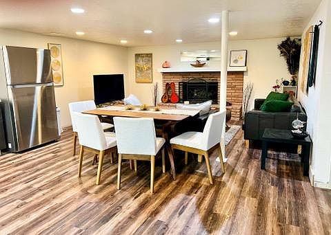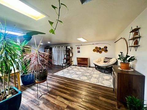 Unique 1 Bed and Bath basement space, unfurnished, has a kitchenette with it's own full size fridge, huge living area and bedroom. This is the basement of a 5 bed 3 bath 2 story house. You will have your own separate apartment in the basement with the rest of the house being common area and a shared spot in the garage. The basement has its own entrance and staircase that is separate from the rest of the main part of the house.