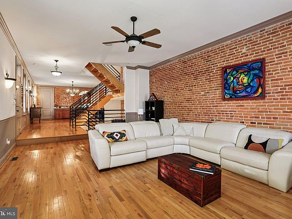 This expansive corner townhouse in Federal Hill offers more than 4,600 square feet of history, light, and livable luxury. Every room tells a story, with soaring ceilings, exposed brick, hardwood floors, and architectural details that blend timeless charm with modern comfort. The corner location bathes the home in natural light from large windows on two sides—easily adjustable with classic wooden shutters on the main floor and blinds on the upper floors to set the perfect mood. The formal dining room with wet bar and wine storage is large enough to have its own sitting area and flows naturally into a chef’s eat-in kitchen. Here, culinary enthusiasts will find double ovens, an exterior-vented gas cooktop over the center island and ample cabinetry that make this space as functional as it is beautiful. The second-floor living room, featuring a wood-burning fireplace, adds flexibility—ideal as a cozy lounge or easily convertible into a fourth bedroom. Upstairs, two impressive rooftop decks provide a full 360-degree view of the city skyline, perfect for entertaining, stargazing, or enjoying front-row seats to Inner Harbor fireworks. A conveniently placed powder room means guests can linger comfortably on the roof. Downstairs, the large finished basement offers even more potential, including a dedicated wine room and a enclosed rec room with french doors. Whether you dream of creating a personal theater, speakeasy, gym, or library, the possibilities are endless. Generously sized bedrooms include two with en-suite baths—one featuring a shower so luxurious it’s sure to inspire envy. The primary suite offers a true retreat, complete with an impressive spa-like bathroom showcasing a large walk-in shower and a deep jetted tub, perfect for unwinding at the end of the day. It’s rare to find a home that offers such abundant closet and storage space—each area thoughtfully designed to keep your living spaces as beautiful as they are functional. Practical updates provide peace of mind, including a new electric panel and two new furnaces. This home also conveys with a deeded private garage space located at the Wall St Garage, just one block away, offering both convenience and peace of mind. More than a home, this is an experience—a space to live boldly, entertain effortlessly, and create your own chapter in one of Baltimore’s most iconic neighborhoods.