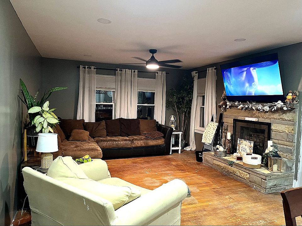 Enjoy the peace and quiet of living in the country and the convenience of being close to shopping and dining in this cozy 1.5 story home. Features include 3 bedrooms, 2 full baths, 3 fireplaces (one with a wood burning insert) formal dining room, large living room and galley kitchen. Outside is a large back yard, (the 1.89 acre lot goes up the hill), above ground pool and a 2 car detached garage.